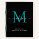 Elegantes Black Aquamarin Green Monogram, Initial Script Name Recipe Notebook