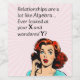 Fügen Sie eine Touch von Witz und Spaß hinzu, während Sie oder ein Freund mit diesem cleveren Buch-Stil der 1950er Jahre eine neue Unabhängigkeit feiern. Das Zitat "Beziehungen sind sehr ähnlich wie Algebra und sind eine Vintag inspirierte Frau, die tief in Gedanken... Sehen Sie sich Ihr x an und wundern Sie sich?" liefert eine witzige Erleuchtung, die eine humorvolle Analogie zwischen Mathematik und den Geheimnissen der Beziehungen zeichne. Mit ihrem Retro-Charme und ihren perfekt gefickten Haaren verkörpert sie die Mischung aus Segel und Einblick, die sich perfekt zum Nachdenken über die Drehungen und Wendungen des Lebens eignet. Dieses Stück ist ideal für jeden, der sich durch Scheidung, Brüche oder die verabredet Welt bewegt. Es ist eine sonderbare Art, neu gefundenen Selbstständigkeit zu feiern, sich über vergangene Beziehungen lustig zu machen oder mit jemandem zu lachen, der dort war. Das Zitat Krawatte Beziehungen zur Algebra, frech darauf hinzuweisen, wie y eine Funktion von x ist - denn manchmal stellt Ihr Ex wirklich den Grund in Frage! Dieses Kunstwerk ist perfekt für Scheidungsfeiern, Spaß zum Auseinanderbrechen oder einfach nur die Hügellage der modernen Liebe zu akzeptieren. Es macht eine mutige Aussage mit Stil und Spaß.