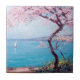 Dieses Design zeigt ein Gemälde des rumänischen Post-Impressionisten Kimon Loghi (1871-1952). Es zeigt eine Schönheitsszene in der modischen französischen Stadt Biarritz, die sich an der Biskaya an der Atlantikküste Südwestfrankreichs befindet. Es ist ein luxuriöses Urlaubsziel am Meer, bekannt für seinen eleganten Lebensstil und die herrlichen Strände. Im Vordergrund des Bildes kann man einen großen Kirschblütenbaum sehen. Auf dem Wasser segelt eine Yacht.