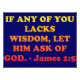 WENN EINER VON IHNEN WISDOM FÄLLT, LASS IHM DEN FRAG GOTTES. Aus Clarkes Kommentar: James 1:5. Wenn einer von euch keine Weisheit hat - Weisheit bedeutet im Allgemeinen das Wissen über das beste Ende und das beste Mittel, es zu erreichen; aber in der Schrift bedeutet es dasselbe wie die wahre Religion, die gründliche praktische Kenntnis Gottes, seines Selbst und eines Erretters. Lass ihm den frag Gottes - denn Gott ist der einzige Lehrer dieser Weisheit. Bestellen Sie noch heute Ihr Exemplar des Fotos mit diesem schönen Bild der Bibelschrift!
