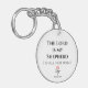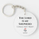Ce porte - clé rond a une petite rose rouge avec une tige noire contre un arrière - plan blanc et le verset de la Bible (Psaume 23) : Le Seigneur est mon berger, je ne veux pas.