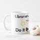 Grafik eines Buches und der Gläser. Text liest: "Bibliothekare tun ihn durch die Bücher. Große Tasse für diesen Bibliothekar in Ihrem Leben!