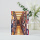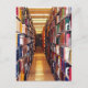 Diese Postkarte führt Sie zu einem Spaziergang durch einen langen Gang der Bücher in den Stapeln einer riesigen Bibliothek. Die helle Beleuchtung zeigt Buchstäbchen in einem Kaleidoskop von Farben: rot, grün, blau, schwarz, weiß, gold, braun, lila. Der symmetrische Winkel erzeugt ein geometrisches Design, das zu Unendlichkeit zu führen scheint. Die Reflexionen auf dem frisch gewachsten Boden tragen zum Gesamtbild bei.