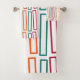 Cet ensemble de serviettes a un design moderne du milieu du siècle de rectangles répétitifs en turquoise, orange, betterave et orange sur un champ de blanc. Si vous aimez le design mais préférez différentes couleurs, envoyez-moi un message.