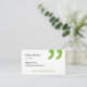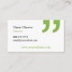 Un carte de visite propre et professionnel qui est idéal pour les bibliothèques, les bibliothécaires, les maisons d'édition, les éditeurs et d'autres entreprises liées au livre, car il a un design de guillemets sur le devant et un design de filigrane de livres ouverts sur le dos, en vert.