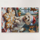 Bring cheerful, fluffy charm to your holiday season with this adorable Bichon Frise Christmas design! This unique scene features a beautiful, snow-white Bichon Frise carefully balancing on a massive, beautifully frosted gingerbread cookie, which is shaped like a delicate snowflake. The dog wears a tiny, chef-style Santa hat. The background features hanging gingerbread men and colorful candy canes, and a window shows soft snow falling onto a quiet town street, emphasizing the cozy, sweet ambiance of holiday baking. This design is a perfect Christmas gift for any Bichon Frise owner, dog lover, or admirer of festive and whimsical companion dog art.