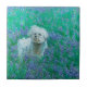Dekorative Keramik mit einer farbigen Abbildung eines Bichon Frisés in einem Bluebonnets-Feld. Artwork: Farbstift auf Panel. Copyright: Dominic White. Alle Rechte vorbehalten.