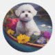 Bichon Frise on a Paddle: Ein Landschaftliches Abe Runder Aufkleber
