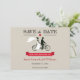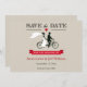 Trendy Enregistrer les cartes Date avec une mariée et marié sur un vélo tandem. Design vintage amusant avec une bannière rouge sur un arrière - plan taupe. Aussi disponible en d'autres couleurs. Obtenir la correspondance enregistrer les timbres de date ci-dessous :