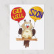 Un hibou souriant tient deux ballons : l'un épelant "va bien" et l'autre "bientôt".