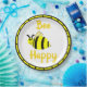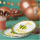 Es ist Frühling, in dem die Bienen anfangen herauszukommen. Dress up your Patio Tisch oder Picknick-Tische mit niedlichen, lächelnden, gelben schwarzen Streifen Hummel auf seinen Flügel Papier Teller. Der Hintergrund ist knusprig weiß. Die Grenzlinie ist schwarz mit schwarzen Punkten auf gelbem Hintergrund dargestellt. Original Graphic Artwork © TamiraZDesign. www.zazzle.com/tamirazdesigns