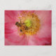 Auf dieser Postkarte befindet sich eine Honigbiene, die die gelben Farbtupfer eines schönen rosa Shirley-Mohns bestäubt. Die goldene und schwarze Biene in den zarten rosa Blütenblättern schafft ein impressionistisches, malerisches Ambiente.