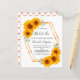 Ein stilvoller weißer Hintergrund. Ein Imitat goldener geometrischer Rahmen. Mit dem Text: Bride to Bee und der Name der Braut vorne geschrieben mit einem modernen handgeschriebenen Stil Skript. Schwarze Buchstaben. Zurück: Rose Gold Honigbiene Muster.