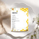 Eine Menükarte, geeignet für ein Bienenbaby oder ein Brautparty, Geburtstag. Mit einer Aquarellblüte, die die Biene belebt. Personalisieren Sie Ihren eigenen Menütext zum Brunch, Mittag- oder Abendessen.