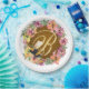 Honigwabenrahmen umgeben von einem Blumenrahmen mit einer niedlichen Wasserfarbe Biene und mit Monogramm Buchstaben.