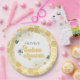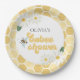 Bienenstube Teller mit Wabendusche, Honigbienen und gedämpftem Design.