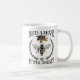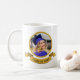 Diese High School Graduate Bee-lieve in Your Journey Bee Coffee Tasse verfügt über eine handgezeichnet, Vintag inspiriert Queen Bee Illustration mit einer Goldkrone, Graduierungsmütze und einem Scroll auf einer Seite mit eleganter Typografie von "Bee-lieve in Your Journey". Auf der anderen Seite, ein benutzerdefiniertes Foto des Absolventen, gerahmt in einem Kreis mit dem bearbeitbaren Text "Klasse von 2024" in einer Goldrolle. Perfekte Tasse für High School Absolventen oder Uni Abitur.