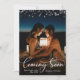 Bientôt Photo Cartes De Faire-part De Grossesse. Attendez-vous à des parents ! Typographie tourbillonnant et blanche moderne en lettrage "Bientôt !" carte script pour partager vos bonnes nouvelles avec votre famille et vos amis. Comprend un script blanc écrit à la main sur la photo complète, au-dessus des étoiles et des lumières. Arrière - plans foncés de photo préférés. À l'arrière de l'arrière - plan noir floral damassé. Vous pouvez personnaliser la conception en remplaçant l'exemple de texte et la photo verticale. #3343 Si vous avez besoin d'aide ou d'articles correspondants, contactez-moi !