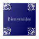 Bienvenidos Zeichen. Weiß auf blauer spanischer Fliese.