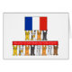 Deux rangées de chats de bandes dessinées brandissant un drapeau français sur une bannière rouge disant "Bienvenue à notre étudiant en devises étrangères".