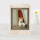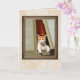 Modèle de la carte de voeux. Texte à l'intérieur de la carte dire "bienvenue à la maison : -). Vous m'avez manqué". Photo en cadre de gingembre et chat blanc attendant à la fenêtre. Cette carte est personnalisable. Le texte à l'intérieur de la carte peut être modifié.