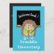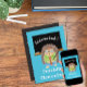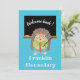 Un mignon invitation numérique pour les enseignants afin d'accueillir leurs jeunes élèves de retour à l'école. Il est bleu à l'avant et dispose d'un mignon maître de hérisson devant un tableau de bord. Les mots sur le tableau étaient "Bienvenue !". Customisez-le avec le nom de votre école. Le dos est noir. Personnalisez-le avec votre texte principal (y compris la date et l'heure de l'événement), le nom de l'enseignant et le numéro de la maison. © ArianeC Illustrations-Tous droits réservés