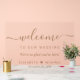 Mariage chic bienvenue signature acrylique claire avec "Bienvenue à notre Mariage" dans un mélange de typographie or moderne et un élégant script or avec des swashes, "Nous sommes si heureux que vous êtes ici" dans la typographie classique serif d'or, vos prénoms unis par un coeur et votre date mariage.