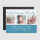 Bienvenue bébé. Un faire-part de naissance photo classique pour bébé en bleu cérusé avec une belle typographie cursive au-dessus de votre collage photo de nouveau-né doux. Une belle carte magnétique photo pour bébé.
