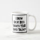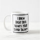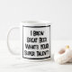 Ein lustiger Slogan auf einer Tasse, die sagt: "Ich braue Großes Bier. Was ist DEIN super Talent?" Tasse für einen Brauer. Schwarzweißtext.