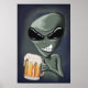 Eine Alien mit einem kalten, frostigen Bier.