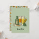 Bier-Darstellung. Flasche, Glas, Öfen, Hopfen und Gerste. Benutzerdefinierte Hintergrundfarbe. Eigener Text.