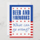 Bier und Feuerwerk - Was kann schief gehen lustige Einladung für ein 4. Juli Party. Eine unglaublich witzig Einladung für ein Party zum Unabhängigkeitstag mit Alkohol und Feuerwerk! Rot, weiß und blau.