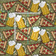 Bier-Tassen und Pizza-Scheiben mit Käse und Pepperonis und helle beige Sterne in einem Dijon grünen. Sie können die Farbe zu jeder möglicher Wahl besonders anfertigen, die Sie wollen. Ideengeschenk für ihn!