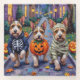 Adorable Biewer Terrier, die in verspielten Halloween-Kostümen gekleidet sind, tragen Kürbiseimer, während sie unter dem mondbeleuchteten Himmel tricksen oder behandeln. Dieses festliche Design hebt den seidigen, tri-farbenen Mantel der Rasse hervor, verleiht spielerischem Charme und liebevoller Persönlichkeit, die perfekt die gespenstische und dennoch lustige Atmosphäre Halloween-Abends einfangen. Eine wunderbare Feier für Hundefreunde und Halloween-Fans gleichermaßen.