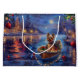 Set segelt mit dieser sehr detaillierten Abbildung in den Zauber der Urlaubssaison und zeigt einen stolzen Hund, der in einem festlich dekorierten Boot sitzt und über einen ruhigen Weihnachtssee gleitet. Die Lichter der nahen Kiefernbäume reflektieren das Wasser und warmen, festlichen Glanz, der das gemütliche Ambiente verstärkt. Die Ornamente versetzen sich von den Seiten des Bootes, während die Laternen leuchten und eine Szene schaffen, die das wahre Wesen der Weihnachtswärme und -freude einfängt. Dieses nostalgische Kunstwerk bringt eine Touch von Urlaubsmagie in jeden Raum, perfekt für diejenigen, die den Geist der Saison schätzen.