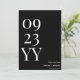Machen Sie eine kühne Aussage mit unserem Big Bold Black and White Date Save the Date. Dieses auffällige Design zeichnet sich durch eine große und wirkungsvolle Darstellung Ihres Hochzeitstils in einem auffallenden Schwarz-Weiß-Farbschema aus. Die Einfachheit und der Kontrast des Designs schaffen ein modernes und raffiniertes Aussehen, das Ihre Gäste sicher begeistern wird. Der hochwertige Druck sorgt für präzise und klare Details und macht das Datum zum Brennpunkt der Karte. Mit den individuell anpassbaren Optionen für Ihre Namen und zusätzliche Details, diese Save the Date Karte können Sie eine personalisierte Touch zu Ihren Hochzeitsankündigungen hinzufügen. Set den Ton für deinen großen Tag mit unserem Big Bold Black and White Date Save the Date, um einen bleibenden Eindruck und Gebäude Vorfreude unter deinen Lieben zu machen. Machen Sie sich bereit, Ihre Hochzeitsreise mit Stil und Flair zu beginnen. Teil der Schwarz-Weiß-Hochzeitskollektion.