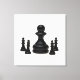 Großer Boss. Große, schwarze Schachfigur, umgeben von vier kleinen Schachzügen, abgeschieden vor weißem Hintergrund. Bigness für Größe zu nehmen.