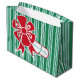 Ein großer roter Bogen schmückt dieses Aqua- und grün gestreifte Urlaubsgeschenk-Tasche. Diese Tasche ist ideal für alle Altersgruppen. Das Design stammt aus der Originalkunst.