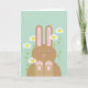 Ein Bug-Hase sitzend in den Blume mit Happy Oaster in seinen Ohren.