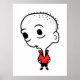 Seltsam aussehender kleiner Cartoon mit einem unglaublich großen Kopf, der ein rotes Shirt und schwarze Hosen trägt. Originelle Cartoon-Kunst von Taylor Addams.