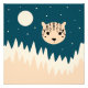 Große Nachthimmel der Katze, Illustration in rohen Pastellfarben eines Felsengesichts in einem Vollmondhimmel über einem Wald