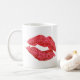 Wenn Sie Ihren Kaffee, Tee oder Kakao trinken, warum nicht Spaß damit haben? Auf dieser Tasse wird ein Paar roter Lippen gedrückt. Ändern Sie die Hintergrundfarbe, um sie scharf und in Ihrem Stil zu machen.
