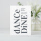 Diese hochmoderne Typografie ist fantastisch sauber und ordentlich gestaltet. Die minimalistische, aber sehr spielerische Empfang-Karte lädt Sie zum Empfang- oder Probe-Dinner in absolutem klassischem Stil & Textplatzierung in Blau, Grau und Weiß für minimalistischen Stil ein. Sie ist jedoch an andere Farben angepasst und gehört zu einer einzigartigen Suite und Kollektion von Phrosne Ras Design. Das wäre gut für diejenigen, die ein lustiges Schwarz-Weiß-Event planen, denn diese Empfang-Einschließkarte war kühn und wurde von lustigen Leuten inspiriert, die ein gutes Party Liebe haben und sich nicht von der Tradition abhalten lassen sollten.