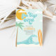 Le Grand ! Surfing Beach 1er anniversaire invitation avec vagues turquoise et surf orange.