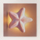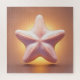 An illustration of a big pink starfish with an orange background. Bright yellow light seems to shine behind it.