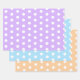 Ein Set aus drei verschiedenen Farben klassischer großer Polka Dotmuster in Pastelllavender, blau und oange, perfekt für Babyduschen, Ostern, Geburtstage und mehr.