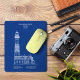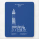 Diese Illustration des Big Sable Point Leuchtturms ist im Stil einer klassischen blauen Blaupause dargestellt und verwandelt das historische Bauwerk in etwas, das sich sowohl technisch als auch zeitlos anfühlt. Vor einem reichen blauen Hintergrund spiegelt die scharfe Linienführung architektonische Zeichenpläne wider und hebt die präzisen Proportionen und den strukturellen Charakter des Leuchtturms hervor.