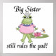 Big Sister Sake Boxen, Fliesen, Ziergegenstände, Notizbücher, Kissen werfen, Gel-Mousepads, Porto, Aufkleber, und andere große Schwesterbekleidung und Geschenkartikel mit einem Mädchen Frosch und Lilienpolster und Text, der lautet "Big Sister regiert noch das Pad!". Große Geschenke für ältere Menschen ist, wenn der neue kleine Bruder oder die neue Schwester kommt!