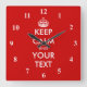 Big Square Keep Calm wall clock Customizable text Quadratische Wanduhr