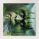 Rätsel zum Thema Sasquatch Eine coole Doppelillustrierung des großen Fußes mit einer doppelten Exposition von Wald, Bergen und Fluss. Hübsche grüne und blaue Farbtöne.